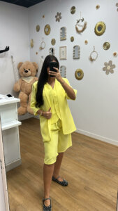 Apportez une touche de couleur et d’élégance à votre dressing avec ce bermuda jaune pour femme, une pièce tendance qui allie confort et style.