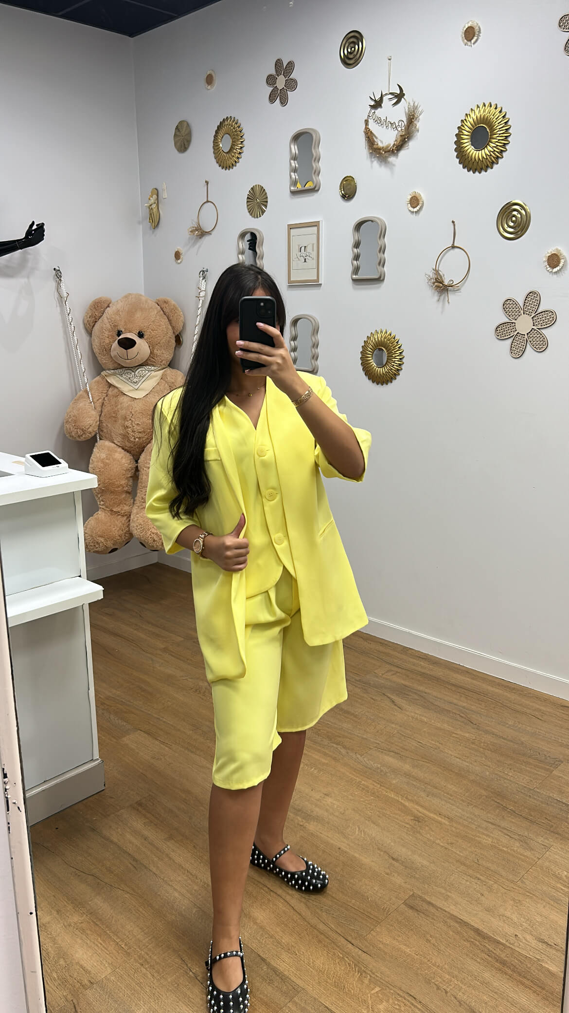 Avec sa coupe fluide et moderne, ce bermuda offre une silhouette élégante tout en restant agréable à porter. Sa couleur jaune lumineuse apporte fraîcheur et originalité à votre tenue.