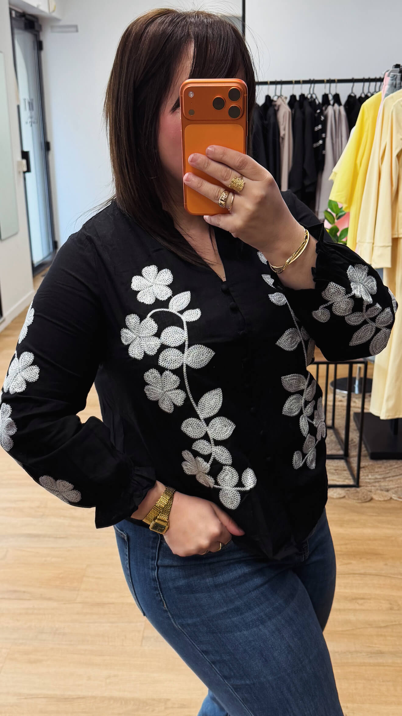 Optez pour une allure élégante et intemporelle avec cette blouse noire femme en lin brodé, parfaite pour sublimer vos looks du quotidien.