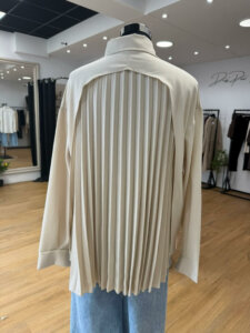 Apportez une touche d’élégance et d’originalité à votre dressing avec cette chemise beige pour femme au dos plissé, une pièce chic et raffinée qui sublime toutes les silhouettes.