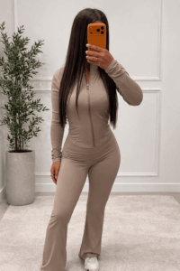 Optez pour un style sport chic moderne avec cet ensemble pilate taupe, une tenue aussi confortable que tendance.