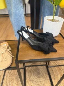 Sublimez vos tenues avec ces escarpins noirs femme à nœud, une pièce élégante et intemporelle qui apporte une touche de féminité à votre look.