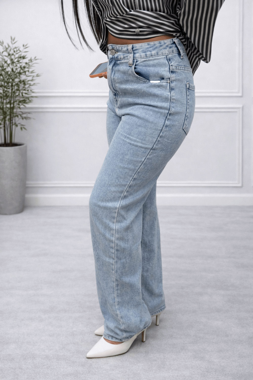 Sa coupe droite flatteuse met en valeur la silhouette tout en offrant un confort optimal. Sa teinte bleu clair légèrement délavée apporte une touche tendance et facile à associer avec toutes vos tenues.