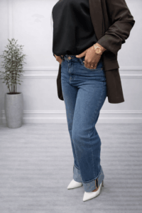 Sa coupe droite flatteuse met en valeur la silhouette tout en offrant un confort optimal. Son ourlet retroussé au bas du jean apporte une touche moderne et stylée qui fait toute la différence.