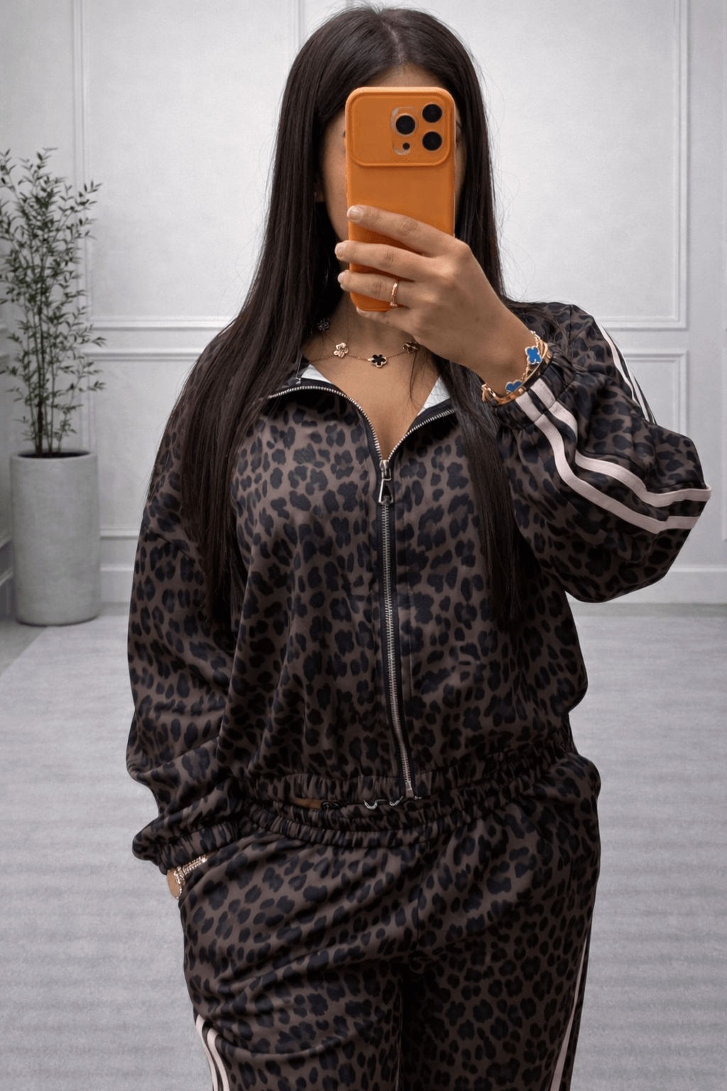 Apportez du caractère à votre tenue avec cette veste léopard sport chic, une pièce tendance qui combine confort et style.