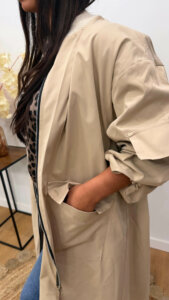 Cette veste longue beige femme est parfaite pour la mi-saison et devient rapidement une pièce essentielle du dressing féminin.